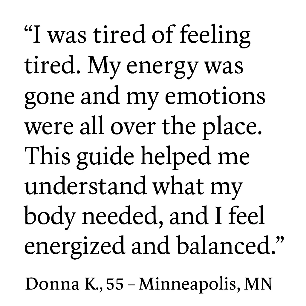 You'll stop feeling like your body is out of control. This is how I felt when I was struggling with perimenopausal mood swings… But with this guide, you'll have the tools to balance your emotions, and you'll feel confident and in control again.